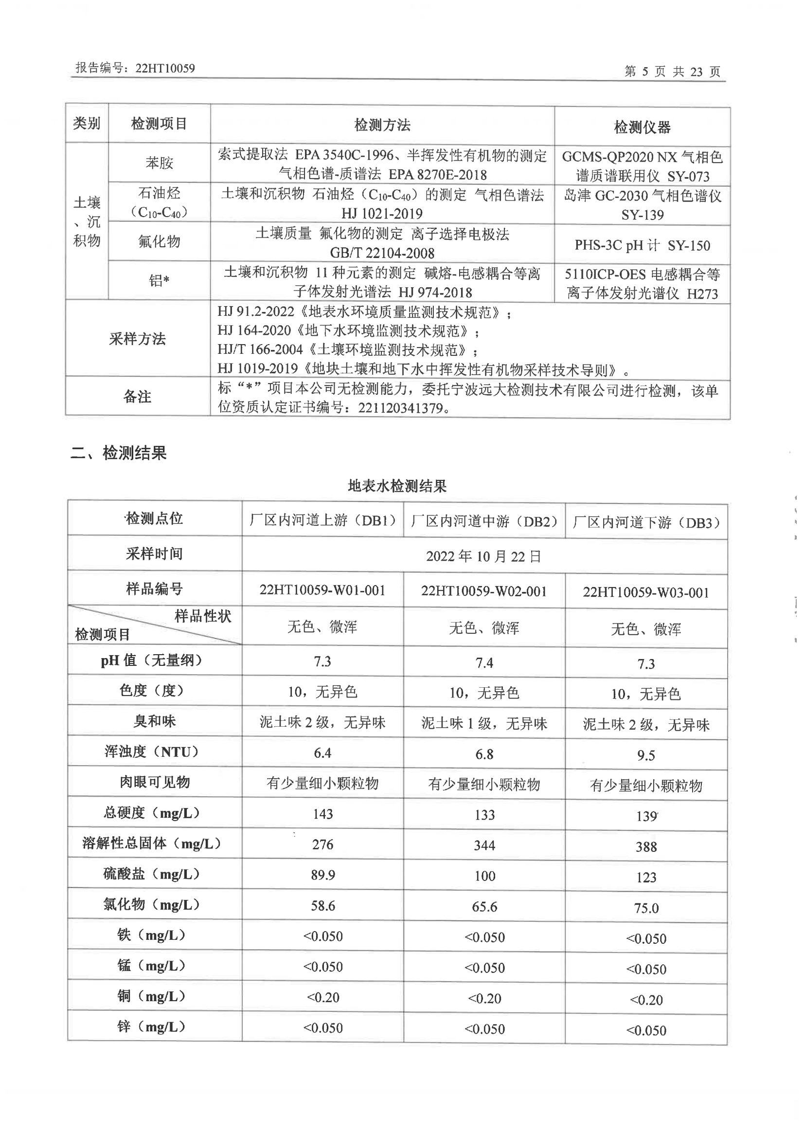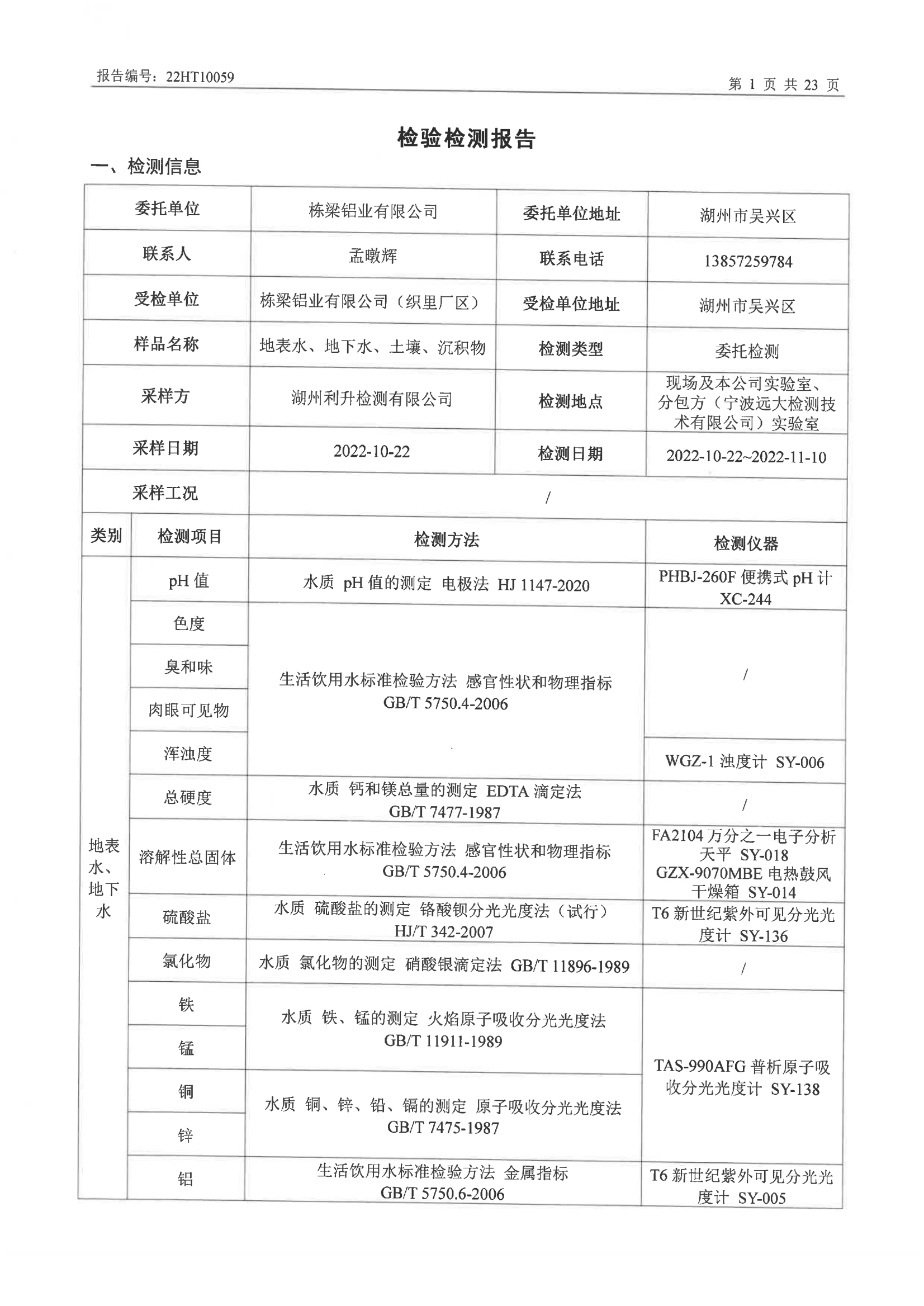 栋梁铝业有限公司(织里厂区)地表水、地下水、土壤、沉积物检测报告